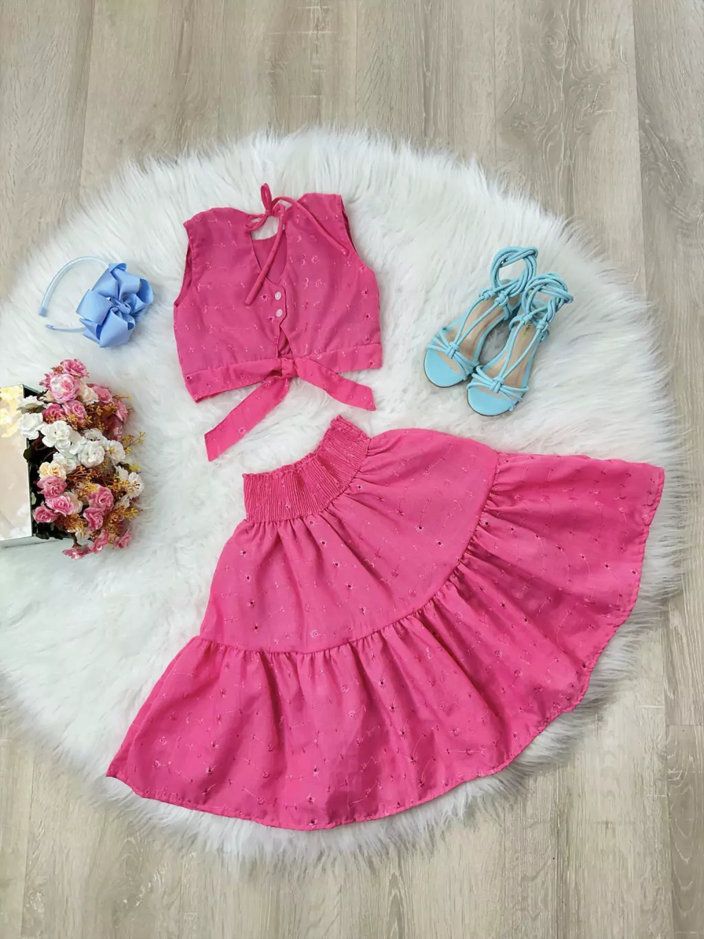 O Conjunto Meninas Cropped Rosa e Saia Mid Bordado Luxo (3408PK) é um verdadeiro tesouro em forma de roupa infantil. O cropped rosa delicado e feminino é perfeitamente combinado com a saia midi bordada, criando um look encantador e cheio de personalidade. O detalhe luxuoso do bordado eleva o conjunto a outro patamar, garantindo que a sua pequena se destaque com um visual único e inesquecível.