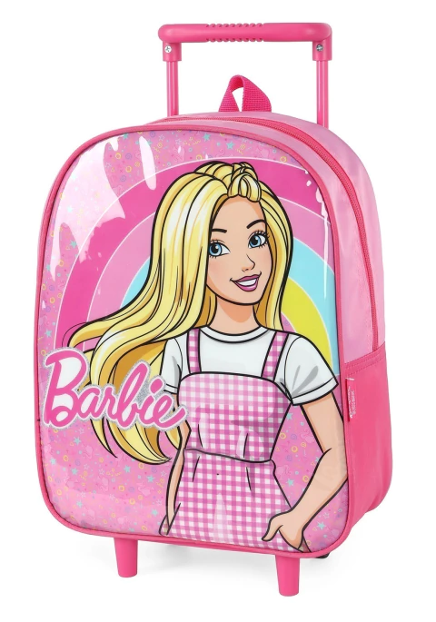 Mochila de Rodinhas Barbie Pink – perfeita para crianças até 5 anos! Com design encantador da Barbie, essa mochila espaçosa (25x38x14 cm) alia praticidade e estilo. Feita com material resistente (70% poliéster, 30% PVC), possui rodinhas duráveis e alça ajustável, garantindo conforto e organização para o material escolar. Leve, pesa apenas 0,7 kg, e mede 56 cm com alça estendida. Ideal para acompanhar os pequenos na escola com charme e facilidade!