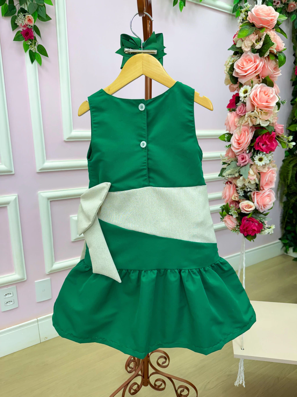 Com um verde natal clássico que é puro charme, ele traz uma faixa prateada brilhante e um lação lateral com strass que vai fazer você brilhar mais que pisca-pisca.