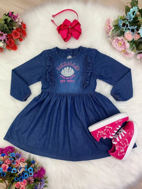Não perca a oportunidade de adicionar um toque de magia ao guarda-roupa da sua pequena com o Vestido Infantil Jeans Com Manga Longa Mermaid Off Duty (0010JE). Seja para presentear ou para complementar o visual das meninas, este vestido é a escolha perfeita. Compre agora e proporcione momentos de estilo, conforto e diversão para as pequenas sereias do dia a dia! 🌈